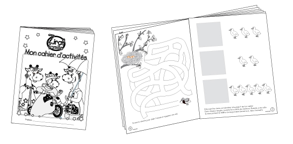 | Un cahier de fiches d’activités et de dessins à colorier | ||